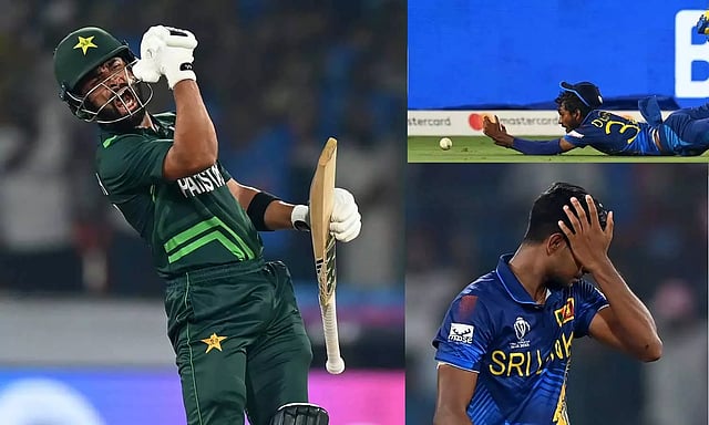 உலக கோப்பை கிரிக்கெட்டில் நேற்று ஐதராபாத்தில் நடைபெற்ற போட்டியில் பாகிஸ்தான்- இலங்கை அணிகள் மோதின. இலங்கை 344 ரன்கள் குவித்த நிலையில், பாகிஸ்தான் எளிதாக சேஸிங் செய்தது.