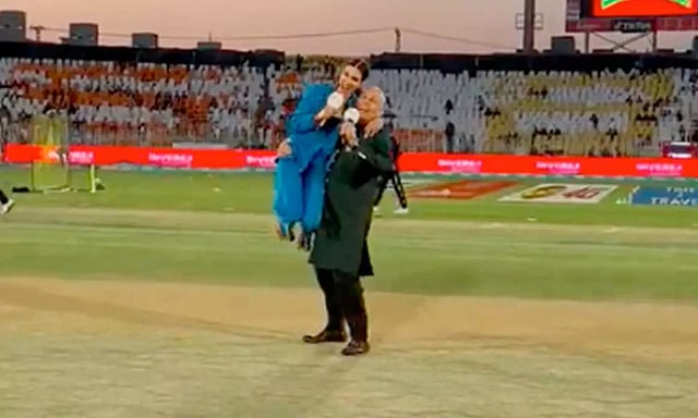 இந்நிலையில் கிரிக்கெட் போட்டி தவிர வர்ணனையாரின் செயலும் ரசிகர்களை வியப்படைய வைத்தது. இந்த போட்டிக்கு முன்பு வர்ணனையாளர் டேனி மோரிசன் தொகுப்பாளர் எரின் ஹாலண்டைத் தூக்கிக் கொண்டு சுற்றினார். இந்த வீடியோ சமூக வலைதளங்களில் வைரலாகி வருகிறது.