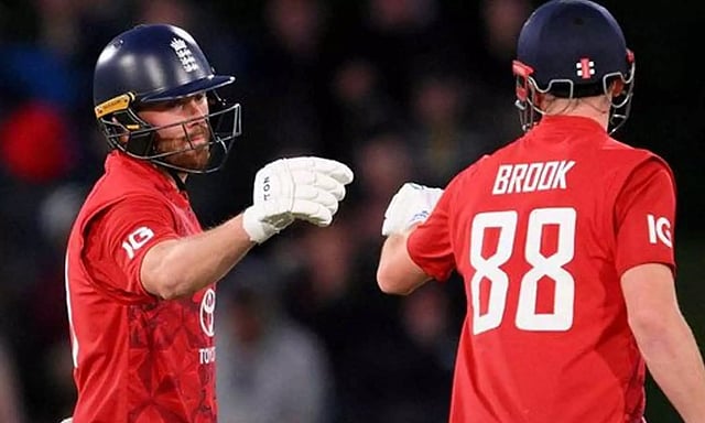 இருவரும் அரை சதம் அடித்து அசத்தினர். அதிரடியாக விளையாடிய ப்ரூக் 35 பந்தில் 78 ரன்களும் சால்ட் 56 பந்தில் 85 ரன்களும் எடுத்து ஆட்டமிழந்தனர்.