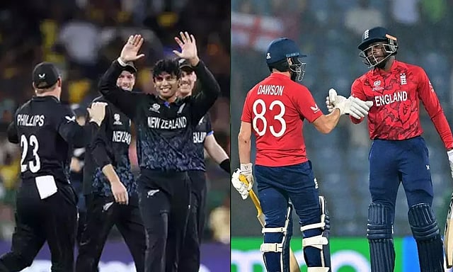 சான்ட்னெர் தலைமையிலான நியூசிலாந்து அணி, ஹாரிக் புரூக் தலைமையிலான இங்கிலாந்தை வீழ்த்தி அரை இறுதிக்கு தகுதி பெறும் ஆர்வத்தில் இருக்கிறது. இங்கிலாந்து ஹாட்ரிக் வெற்றி வேட்கையில் உள்ளது.