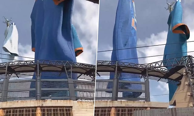 இந்நிலையில் இந்திய அணியின் புதிய பிரம்மாண்ட ஜெர்சி மும்பை வான்கடே மைதானத்தில் தொங்க விடப்பட்டுள்ளது. இதனை பலரும் வீடியோ எடுத்து சமூக வலைதளங்களில் பரப்பி வருகின்றனர். இதனை பார்த்த ரசிகர்கள் பலரும் என்ன நடக்கிறது அங்கே என ஆச்சர்யமாக கருத்துக்களை பதிவிட்ட வண்ணம் உள்ளனர்.