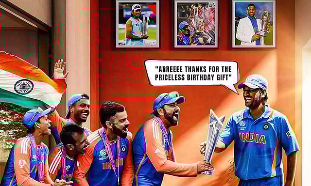டி20 உலகக்கோப்பையை வென்ற இந்திய அணி வீரர்கள் உலகக்கோப்பையை டோனியிடம் கொடுப்பது போன்ற AI படத்தை பகிர்ந்துள்ள ராஜஸ்தான் ராயல்ஸ் அதில், 'பிறந்தநாள் வாழ்த்துக்கள் தல' என்று பதிவிட்டுள்ளது.