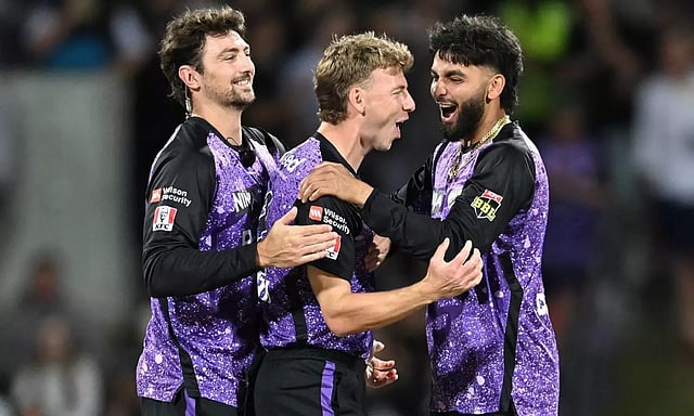 அதன்படி, முதலில் ஆடிய ஹோபர்ட் ஹரிகேன்ஸ் அணி நிர்ணயிக்கப்பட்ட 20 ஓவரில் 7 விக்கெட்டுக்கு 173 ரன்கள் எடுத்தது. பென் மெக்டர்மார்ட் 42 ரன்னும், காலெப் ஜுவல் 40 ரன்னும், மிட்செல் ஒவன் 36 ரன்னும், டிம் டேவிட் 25 ரன்னும் எடுத்தனர்.