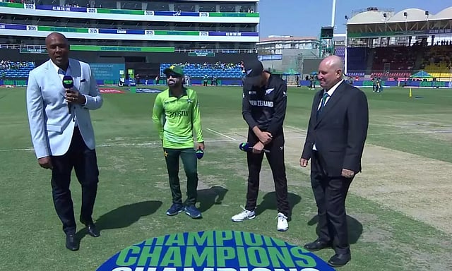 8 அணிகள் பங்கேற்கும் ஐசிசி சாம்பியன்ஸ் டிராபி 50 ஓவர் கிரிக்கட் தொடர் பாகிஸ்தானில் இன்று மதியம் தொடங்கியது. கராச்சியில் நடைபெறும் முதல் போட்டியில் பாகிஸ்தான்- நியூசிலாந்து அணிகள் பலப்பரீட்சை நடத்துகின்றன. இதற்கான டாஸ் சுண்டப்பட்டதில் பாகிஸ்தான் அணி கேப்டன் ரிஸ்வான் டாஸ் வென்று பந்து வீச்சை தேர்வு செய்துள்ளார்.