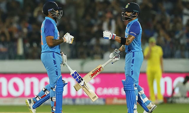 இதையடுத்து 187 ரன் என்ற இலக்கை நோக்கி விளையாடிய இந்திய அணியில் தொடக்க வீரர் கே.எல். ராகுல் ஒரு ரன்னுடன் வெளியேற, கேப்டன் ரோகித் சர்மா 17 ரன் எடுத்தார். பின்னர் ஜோடி சேர்ந்து அதிரடியாக விளையாடிய விராட் கோலி 48 பந்துகளில் 63 ரன்னும், சூரியகுமார் யாதவ் 36 பந்துகளில் 69 ரன்னும் எடுத்தனர்.