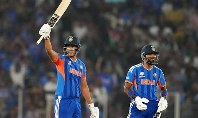 அதனை தொடர்ந்து ஷிவம் துபே - பாண்ட்யா ஜோடி சேர்ந்து அணியின் ஸ்கோரை உயர்த்தினர். துபே முதலில் தடுமாறினாலும் பின்னர் அதிரடியாக விளையாடி அரை சதம் அடித்தார். அவர் 31 பந்தில் 66 ரன்கள் எடுத்து ஆட்டமிழந்தார். பாண்ட்யா 21 பந்தில் 30 ரன்கள் எடுத்து அவுட் ஆனார். கடைசியாக வந்த ரிங்கு சிங் தனது பங்குக்கு ஒரு சிக்சரை பறக்கவிட்டார்.