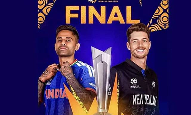 இந்தியா மற்றும் இலங்கை ஆகியவை இணைந்து நடத்தும் டி20 உலகக் கோப்பை தொடரின் இறுதிப் போட்டி அகமதாபாத்தில் இன்று நடைபெறுகிறது. இதில் இந்தியா, நியூசிலாந்து அணிகள் மோதுகின்றன.