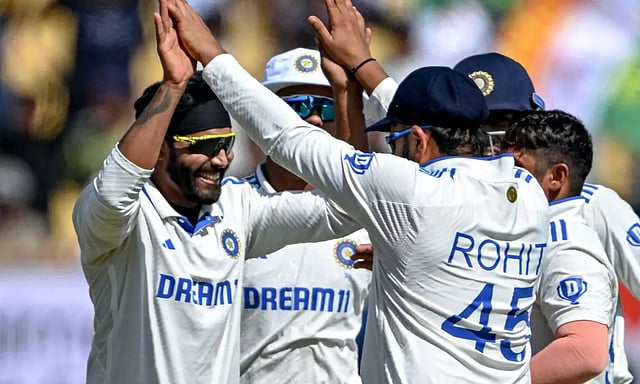 இந்தியா, இங்கிலாந்து அணிகளுக்கு இடையிலான 3-வது டெஸ்ட் போட்டி ராஜ்கோட்டில் நடந்து வருகிறது. முதலில் ஆடிய இந்தியா முதல் இன்னிங்சில் 445 ரன்களை குவித்தது. ரோகித் சர்மா, ஜடேஜா ஆகியோர் சதம் விளாசி அசத்தினர்.