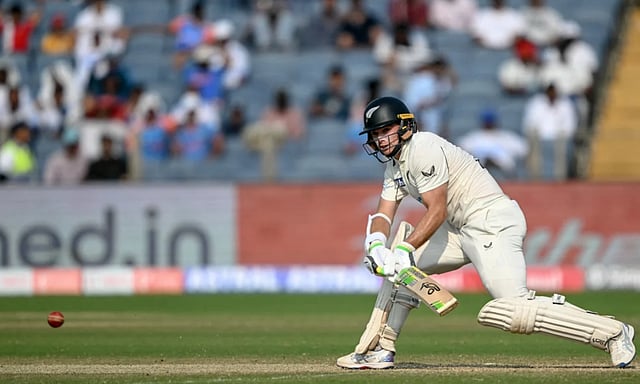 இதைத் தொடர்ந்து நியூசிலாந்து அணி இரண்டாவது இன்னிங்ஸில் ஆட தொடங்கியது. நியூசிலாந்து அணி சீரான இடைவெளியில் விக்கெட்டுகளை இழந்தது. எனினும், அந்த அணியின் கேப்டன் டாம் லேதம் நிதானமாக ஆடி 86 ரன்களை சேர்த்தார். இதேபோல் டாம் ப்லன்டெல் 30 ரன்களை சேர்த்துள்ளார்.