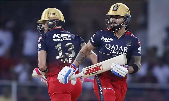 டாஸ் வென்ற பெங்களூரு அணி முதலில் பேட்டிங் செய்தது. துவக்க வீரர்களாக விராட் கோலி, கேப்டன் டூ பிளசிஸ் சிறப்பான துவக்கம் அளித்தனர். விராட் கோலி 31 ரன்கள் எடுத்த நிலையில் ஆட்டமிழந்தார். டூ பிளசிஸ் நிதானமாக விளையாடி ரன் சேர்த்தார். மறுமுனையில் அனுஜ் ராவத் 9 ரன்னிலும், கிளென் மேக்ஸ்வெல் 4 ரன்னிலும், பிரபுதேசாய் 6 ரன்னிலும் அவுட் ஆகினர்.