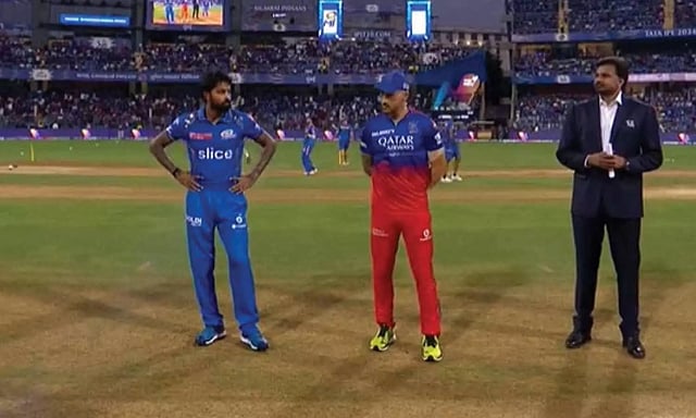 ஐ.பி.எல். 2024 கிரிக்கெட் தொடரின் 25-ஆவது போட்டியில் மும்பை இந்தியன்ஸ் மற்றும் ராயல் சேலஞ்சர்ஸ் பெங்களூரு அணிகள் மோதுகின்றன. மும்பை வான்கடே மைதானத்தில் நடைபெறும் இந்த போட்டியில் டாஸ் வென்ற மும்பை அணி பந்துவீச்சு தேர்வு செய்தது.
