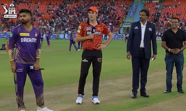 ஐபிஎல் 2024 கிரிக்கெட் திருவிழாவின் பிளேஆஃப் சுற்றுகள் இன்று தொடங்கியது. இன்று நடைபெறும் குவாலிபையர்-1ல் கொல்கத்தா நைட் ரைடர்ஸ்- சன்ரைசர்ஸ் ஐதராபாத் அணிகள் பலப்பரீட்சை நடத்துகின்றன. இதற்கான டாஸ் சுண்டப்பட்டதில் சன்ரைசர்ஸ் ஐதராபாத் அணி கேப்டன் பேட் கம்மின்ஸ் டாஸ் வென்று பேட்டிங் தேர்வு செய்துள்ளார்.