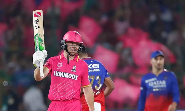 அடுத்து வந்த ரியான் பராக் 4 ரன்னிலும், ஜுரேல் 2 ரன்னிலும் ஆட்டமிழந்து ஏமாற்றம் அடைந்தனர். 5-வது விக்கெட்டுக்கு பட்லர் உடன் ஹெட்மையர் ஜோடி சேர்ந்தார்.