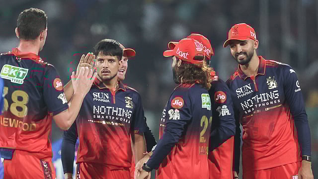 பெங்களூரு தரப்பில் சிறப்பாக பந்துவீசிய ஹேசில்வுட் 4 விக்கெட்டுகளையும், புவனேஷ்வர் குமார் 3 விக்கெட்டுகளையும், ரசிக் சலாம், சுயாஷ் சர்மா மற்றும் க்ரூணல் பாண்டியா தலா 1 விக்கெட் கைப்பற்றினர்.