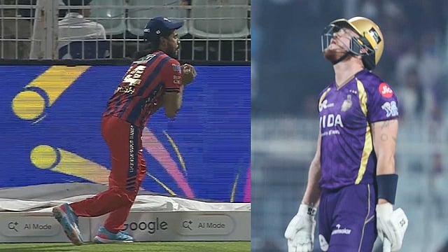 இதனையடுத்து 2-வது ஓவரை பிரின்ஸ் வீசினார். இந்த ஓவரில் ஆலன் 2 பவுண்டரிகளை விளாசினார். அதற்கு அடுத்தை பந்தை அதிரடியாக விளையாடினார். பந்து பேட்டின் முனையில் பட்டு தேர்ட் மேன் திசைக்கு சென்றது. அங்கு பவுண்டரி லைனில் நின்ற திக்வேஷ் ரதி கேட்ச் பிடித்து எல்லை கோட்டை காலால் மிதித்தார். இதனை அவரும் கவனித்தது போல இருந்தது.