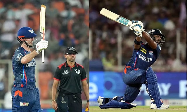 அணியின் ஸ்கோர் 9.5 ஓவரில் 91 ரன்னாக இருக்கும்போது மார்கிராம் ஆட்டமிழந்தார். அடுத்து மிட்செல் மார்ஷ் உடன் நிக்கோலஸ் பூரன் ஜோடி சேர்ந்தார். மிட்செல் மார்ஷ் 33 பந்தில் அரைசதம் அடித்தார். லக்னோ அணி 10.3 ஓவரில் 100 ரன்னைத் தொட்டது.