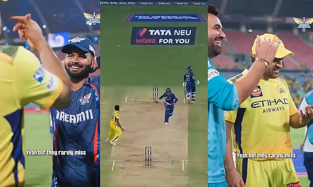 அதைக் அருகில் இருந்த கேட்ட லக்னோ ஆலோசர் ஜஹீர் கான் "அவ்வளவு சுலபமாவா செய்தீர்கள்?" என்ற வகையில் ஆச்சரியத்துடன் தோனி போல வெறுங்கை யை தூக்கி எறிந்து செய்துப் பார்த்தார். இறுதியில் ரிஷப் பண்ட் "நான் ரன் எடுப்பதற்காக வேகமாக ஓடினேன். அப்போது ரன் அவுட்டாகி விடுவோமோ என்ற பயத்துடன் திரும்பிச் சென்றேன்" என தோனியிடம் ஜாலியாக கூறினார்.