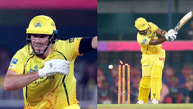 அதன்படி சென்னை சூப்பர் கிங்ஸ் (CSK) அணியின் சஞ்சு சாம்சன், ருதுராஜ் கெய்க்வாட் ஆகியோர் தொடக்க வீரர்களாக களம் இறங்கினர். சஞ்சு சாம்சன் 6 ரன்கள் எடுத்த நிலையில் நேந்த்ரே பர்கர் பந்தில் ஸ்டம்பை பறிகொடுத்தார். ருதுராஜ் கெய்க்வாட் 6 ரன்கள் எடுத்த நிலையில் ஆர்ச்சர் பந்தில் க்ளீன் போல்டானார்.