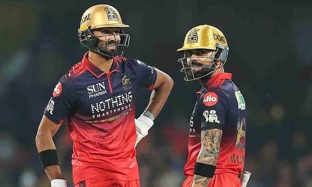2வது விக்கெட்டுக்கு விராட் கோலி-படிக்கல் ஜோடி 101 ரன்கள் சேர்த்தது. அடுத்து இறங்கிய ரஜத் படிதார் 12 பந்தில் 31 ரன்கள் குவித்து ஆட்டமிழந்தார்.