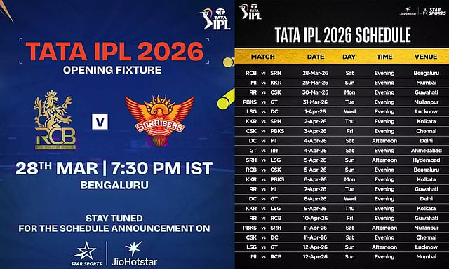 பெங்களூரு சின்னசாமி மைதானத்தில் மார்ச் 28ம் தேதி நடைபெறவுள்ள 2026 ஐ.பி.எல். தொடரின் முதல் போட்டியில் நடப்பு சாம்பியன் பெங்களூரு அணியுடன் ஐதராபாத் அணி மோதுகிறது.