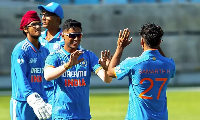 இந்தியா தரப்பில் அதிகபட்சமாக சேத்தன் சர்மா, ஹார்டிக் ராஜ், கார்த்திகேயா ஆகியோர் தலா 2 விக்கெட்டுகள் வீழ்த்தினர். இந்திய அணி தனது கடைசி லீக் ஆட்டத்தில் வரும் 4ம் தேதி யு.ஏ.இ அணியை எதிர்கொள்கிறது. இந்த ஆட்டத்தில் இந்திய அணி வெற்றி பெற்றால் அரையிறுதிக்கு முன்னேறும். இந்திய அணி தோல்வி கண்டால் யு.ஏ.இ அணி அரையிறுதிக்கு முன்னேறும்.