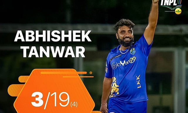 கோவை அணி சார்பில் அபிஷேக் தன்வார் 3 விக்கெட்டும், ஷாருக் கான், திவாகர் 2 விக்கெட்டும் வீழ்த்தினர்.