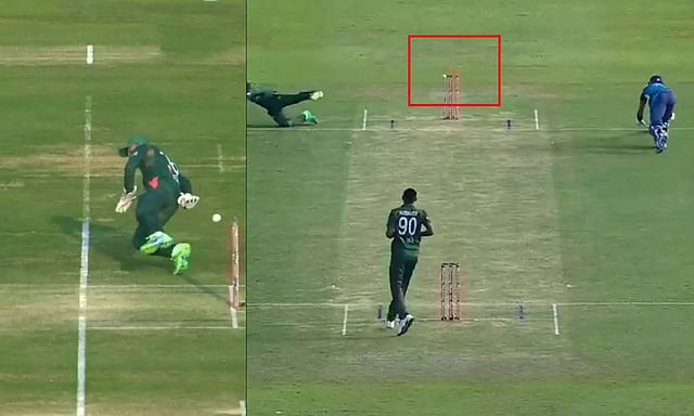 தற்போது இந்த போட்டியின் போது வங்காளதேசம் அணியின் விக்கெட் கீப்பர் எடுத்த ரன் அவுட் தொடர்பான வீடியோ சமூக வலைதளங்களில் வைரல் ஆகி வருகிறது. போட்டியின் இக்கட்டான சூழலில் வங்காளதேசம் அணி விக்கெட் கீப்பர் லிட்டன் தாஸ், ஸ்டம்ப்களை பார்க்காமலேயே காற்றில் மிதந்த படி ஸ்டம்பிங் செய்தார்.