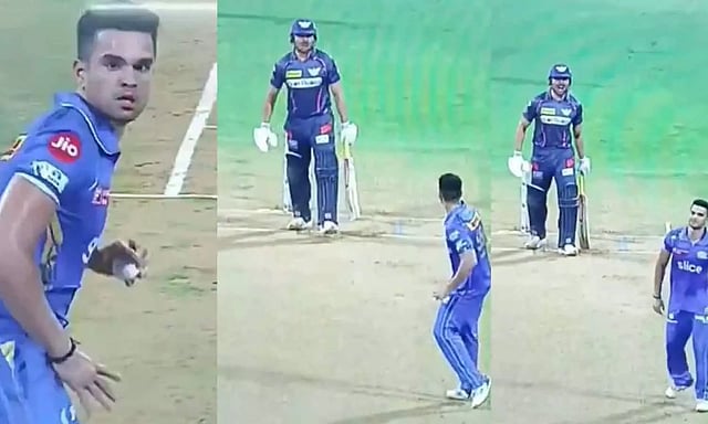 ஆனால், அவர் ரிவ்யூ எடுக்கவே, பந்து ஸ்டெம்பிற்கு மேல் சென்றது தெளிவாக தெரிந்தது. இதன் காரணமாக நடுவர் முடிவு திரும்ப பெறப்பட்டது. இந்த ஓவரின் கடைசி பந்தில் ரன் எடுக்காத போதிலும், அவர் கிரீஸிற்குள்ளாக நின்று கொண்டிருந்தார். அப்போது அர்ஜூன் டெண்டுல்கர் பந்தை அவரை நோக்கி எறிவது போன்று ஆக்ஷன் செய்தார். இதற்கு மார்கஸ் ஸ்டோய்னிஸ் ஏதோ கூறியபடி நடந்து வந்தார்.