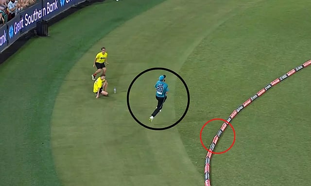 முன்னதாக அப்போட்டியில் மிடில் ஓவர்களில் களமிறங்கி மிரட்டலாக பேட்டிங் செய்த ஜோஸ் சில்க் 3 பவுண்டரி 2 சிக்சருடன் அதிரடியாக ரன்களை சேர்த்து சிட்னி அணியை வெற்றி பாதைக்கு அழைத்து வர போராடினார். குறிப்பாக 19-வது ஓவரின் முதல் பந்தில் அதிரடி காட்டிய அவர் டீப் திசையில் சிக்சரை பறக்க விட்டார். அதை அந்த பகுதியில் நின்று கொண்டிருந்த ஆஸ்திரேலிய வீரர் மைக்கேல் நாசீர் முடிந்தளவுக்கு தாவி பந்தை பிடித்தார். அதே சமயம் பேலன்ஸ் செய்ய முடியாமல் பவுண்டரி எல்லையை கடந்த அவர் வழக்கம் போல பந்தை மேலே தூக்கி போட்டு பவுண்டரி எல்லைக்குள் சென்றார்.