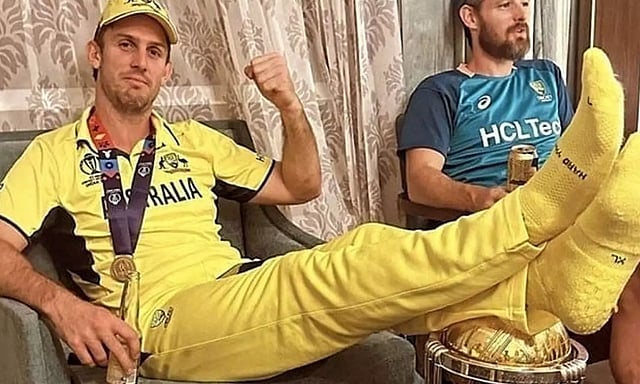 இதற்கிடையே உலக கோப்பை மீது ஆஸ்திரேலிய வீரர் மிட்செல் மார்ஷ் கால் வைத்திருந்த புகைப்படம் சமூக வலைதளங்களில் வெளியானது. இதற்கு பலர் கண்டனம், அதிருப்தி தெரிவித்தனர். இந்திய கிரிக்கெட் அணியின் நட்சத்திர விக்கெட் வீழ்த்திய முகமது ஷமி, ஒரு பேட்டியில் மார்ஷின் செயலால் "காயமடைந்ததாக" தெரிவித்தார். மார்ஷிடமிருந்து எந்த பதிலும் இல்லாமல் சில நாட்கள் கடந்தன.