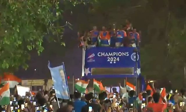 இதனையடுத்து திறந்தவெளி பஸ்சில் இந்திய வீரர்கள் ஊர்வலத்தை தொடங்கி உள்ளனர். ரசிகர்கள் சூழ பஸ் ஸ்டேடியத்தை நோக்கி நகர தொடங்கியது. சுற்றி இருந்த ரசிகர்கள் முழக்கத்திற்கு மத்தியில் இந்திய அணி வீரர்கள் மகிழ்ச்சியுடன் ஊர்வலத்தை கொண்டாடி வருகின்றனர்.