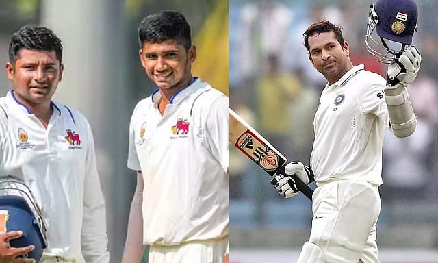 மறுமுனையில் நிலைத்து நின்று பொறுமையாக ஆடிய முஷீர் கான் 255 பந்துகளில் சதத்தை பூர்த்தி செய்தார். இதன் மூலம், 19 வயதான முஷீர் கான் ரஞ்சி கிரிக்கெட் இறுதிப்போட்டியில் இளம் வயதில் சதம் அடித்த மும்பை வீரர் என்ற சாதனையை சச்சின் டெண்டுல்கரிடம் இருந்து தட்டிப்பறித்தார். இதற்கு முன்பு 1994-95-ம் ஆண்டு ரஞ்சி இறுதி ஆட்டத்தில் பஞ்சாப் அணிக்கு எதிராக டெண்டுல்கர் தனது 21 வயதில் சதம் அடித்ததே (140, 139 ரன்கள்) இந்த வகையில் சாதனையாக இருந்தது. அந்த 29 ஆண்டு கால சாதனைக்கு முஷீர் கான் நேற்று முற்றுப்புள்ளி வைத்தார்.