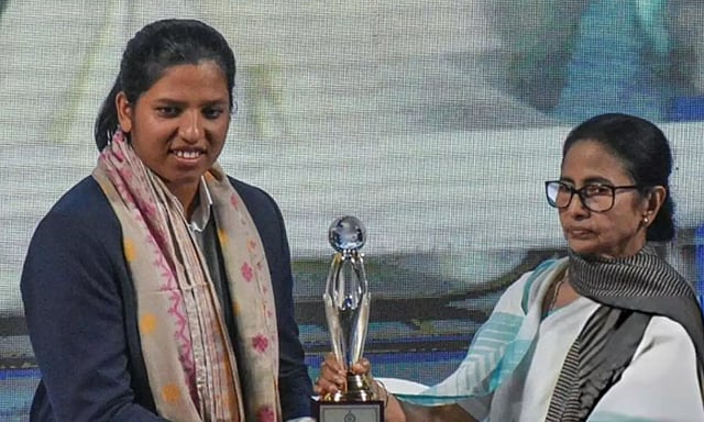 மேலும், வங்காள கிரிக்கெட் சங்கம் (CAB) தங்கப் பெண்ணுக்கு ரூ.34 லட்சம் நிதி வெகுமதியையும், தங்க முலாம் பூசப்பட்ட மட்டை மற்றும் பந்தையும் வழங்குவதாக அறிவித்துள்ளது.
