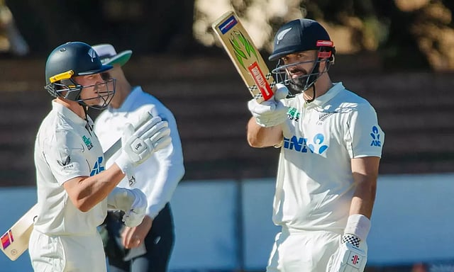 கான்வே உடன் டேரில் மிட்செல் இணைந்தார். இருவரும் சிறப்பாக விளையாடி அரை சதம் கடந்தனர். கான்வே 88 ரன்னிலும், டேரில் மிட்செல் 80 ரன்னிலும் ஆட்டமிழந்தனர்.
