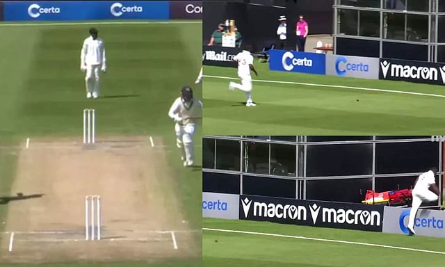 எந்த ஓவர் த்ரோவும் இல்லாமல் ஃபீல்டர் பவுண்டரில் லைனில் பந்தை தடுத்து வீசுவதற்குள் மெக்ப்ரைன் - லார்கன் ஜோடி ஓடியே 5 ரன்கள் எடுத்துள்ளனர்.