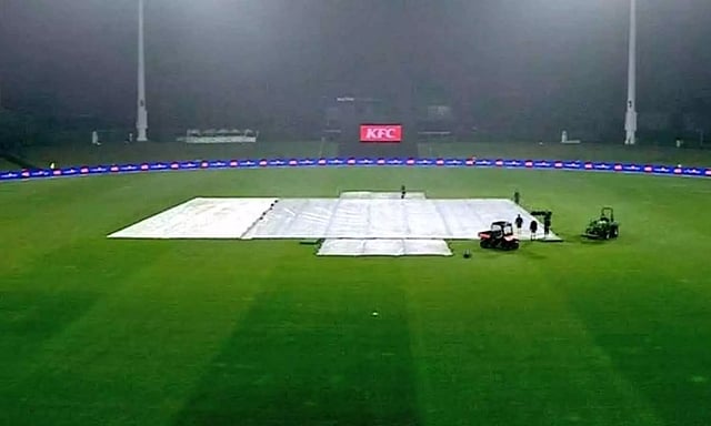 அதன்படி முதலில் ஆஸ்திரேலிய அணி பேட்டிங் செய்தது. 3-வது ஓவரின் போது மழை குறுக்கிட்டது. இதனால் ஆட்டம் பாதிக்கப்பட்டது. தொடர்ந்து மழை பெய்து கொண்டிருந்ததால் ஆட்டம் கைவிடப்பட்டதாக நடுவர்கள் அறிவித்தனர்.