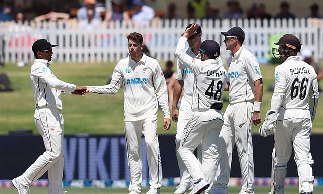 கீகன் பீட்டர்சன் 45 ரன்களும், டேவிட் பெடிங்காம் 32 ரன்களும் சேர்த்தனர். நியூசிலாந்து அணி சார்பில் மேட் ஹென்ரி, மிட்செல் சான்ட்னெர் தலா 3 விக்கெட் வீழ்த்தினர். கைல் ஜாமிசன், ரச்சின் ரவீந்திரா தலா 2 விக்கெட் வீழ்த்தினர்.