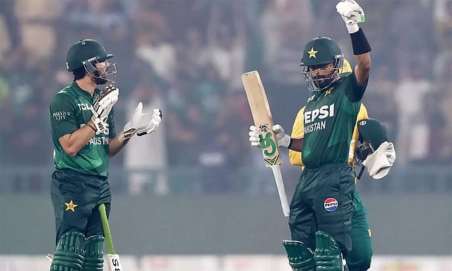 அடுத்து ஆடிய பாகிஸ்தான் அணி 19 ஓவரில் 6 விக்கெட்டுக்கு 140 ரன்கள் எடுத்து 4 விக்கெட் வித்தியாசத்தில் வெற்றி பெற்றது. பாபர் அசாம் 47 பந்தில் 68 ரன் எடுத்து வெற்றிக்கு முக்கிய பங்கு வகித்தார்.