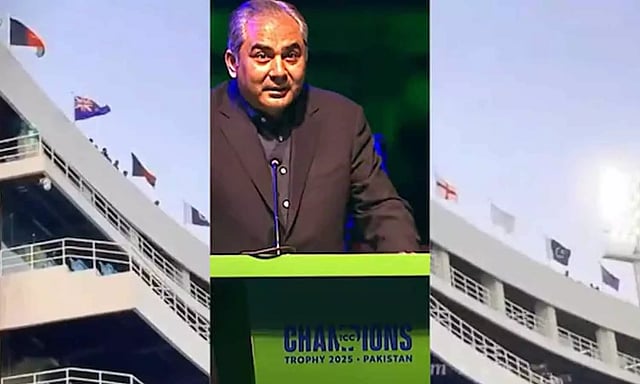 இந்நிலையில் பாகிஸ்தானில் உள்ள கராச்சி மைதானத்தில் ஏழு நாடுகளின் கொடி மட்டும்தான் பறக்க விடப்பட்டிருக்கிறது. இதில் இந்தியாவின் தேசியக்கொடி இல்லை. இது சமூக வலைதளங்களில் வைரலானது.