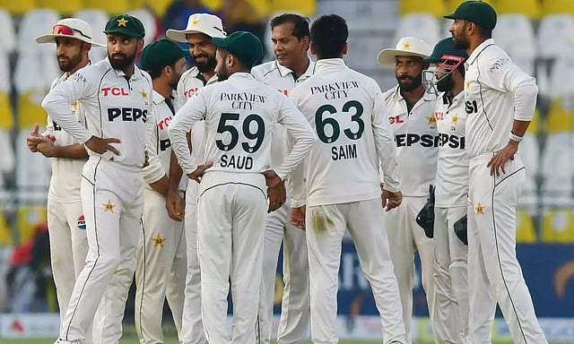 இதனை தொடர்ந்து பாகிஸ்தான் அணி தனது 2-வது இன்னிங்சை தொடங்கியது. சபீக் 4, மசூத் 11, சைம் அயூப் 22, கம்ரான் 26, சகீல் 31, ரிஸ்வான் 23 என சீரான இடைவெளியில் விக்கெட்டுகளை பறிகொடுத்தனர். அடுத்து வந்த ஆகா சல்மான் சிறப்பான ஆட்டத்தை வெளிப்படுத்தி 63 ரன்கள் எடுத்து ஆட்டமிழந்தார்.