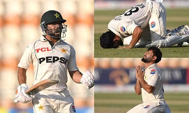 தொடர்ந்து சிறப்பான ஆட்டத்தை வெளிப்படுத்தி வந்த கம்ரான் குலாம் அறிமுக போட்டியில் சதம் அடித்து அசத்தினார். முதல் நாள் ஆட்டம் நேரம் முடிய 5 ஓவர்களே இருந்த நிலையில் கம்ரான் 118 ரன்னில் அவுட் ஆனார். இதையடுத்து முகமது ரிஸ்வான் மற்றும் ஆகா சல்மான் ஜோடி சேர்ந்து விளையாடினர்.