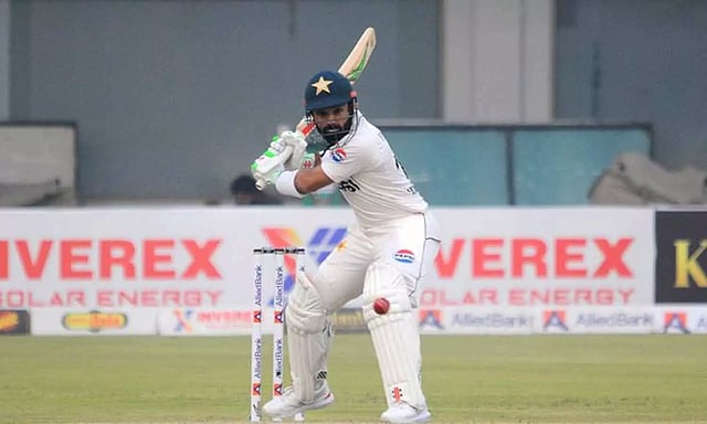 பாகிஸ்தான் தரப்பில் சாத் ஷகீல் 56 ரன்னுடனும், முகமது ரிஸ்வான் 51 ரன்னுடனும் களத்தில் உள்ளனர். வெஸ்ட் இண்டீஸ் தரப்பில் ஜெய்டன் சீல்ஸ் 3 விக்கெட்டும், குடகேஷ் மோடி 1 விக்கெட்டும் வீழ்த்தினர்.