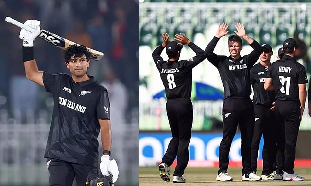 தொடர்ந்து விளையாடிய ரச்சின் ரவீந்திரா 105 பந்தில் 12 பவுண்டரி, ஒரு சிக்சருடன் 112 ரன்கள் எடுத்து ஆட்டமிழந்தார். அப்போது நியூசிலாந்து 38.2 ஓவரில் 201 ரன்கள் எடுத்திருந்தது. அடுத்து கிளென் பிலிப்ஸ் களம் இறங்கினார்.
