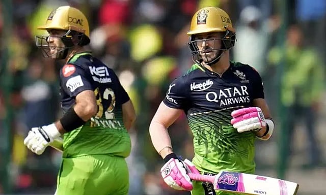 அடுத்து இறங்கிய மேக்ஸ்வெல் டூ பிளசிசுடன் இணைந்து அதிரடியாக ஆடினார். இருவரும் பந்துகளை சிக்சர், பவுண்டரிகளாக விளாசினர்.