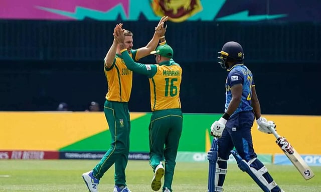 இதனால் இலங்கை அணி 19.1 ஓவரில் 77 ரன்களுக்கு ஆல் அவுட் ஆனது. அதிக பட்சமாக குசல் மெண்டீஸ் 19 ரன்கள் எடுத்தார். தென் ஆப்பிரிக்கா தரப்பில் அன்ரிச் நோர்ட்ஜே 4 விக்கெட்டும் ரபாடா, மகாராஜ் தலா 2 விக்கெட்டுகளை வீழ்த்தினர்.
