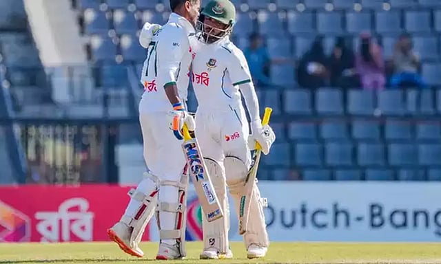 தொடர்ந்து ஆடிய வங்கதேசம் அணி இரண்டாம் நாள் முடிவில் ஒரு விக்கெட் இழப்புக்கு 338 ரன்கள் குவித்துள்ளது. தொடக்க ஆட்டகாரர் ஷட்மன் இஸ்லாம் 80 ரன்னில் அவுட்டானார்.
