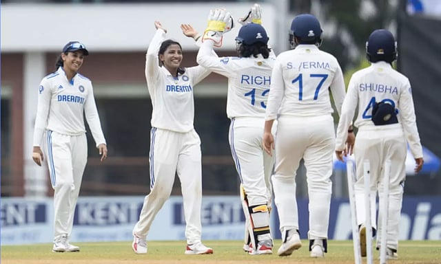 இதற்கிடையே, நேற்று நடந்த இரண்டாம் நாளில் இந்திய அணி முதல் இன்னிங்சில் 6 விக்கெட்டுக்கு 603 ரன்கள் குவித்து டிக்ளேர் செய்தது. கேப்டன் ஹர்மன்ப்ரீத் கவுர் 69 ரன்னும், ரிச்சா கோஷ் 86 ரன்னும் எடுத்து அவுட்டாகினர். இதன்மூலம் மகளிர் டெஸ்ட் கிரிக்கெட் வரலாற்றில் ஒரு இன்னிங்சில் அதிகபட்ச ஸ்கோர் எடுத்த அணி என்ற சாதனையை இந்தியா படைத்துள்ளது.