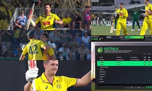 இதனையடுத்து கேமரூன் கிரீன் - அலெக்ஸ் கேரி ஜோடி அதிரடியாக விளையாடி ரன்களை சேர்த்தது. அதிரடியாக விளையாடிய கிரீன் 47 பந்துகளில் அதிவேக சதம் அடித்து அசத்தினார். இறுதியில் 50 ஓவர்கள் முடிவில் 2 விக்கெட் இழப்பிற்கு ஆஸ்திரேலியா அணி 431 ரன்கள் குவித்தது.
