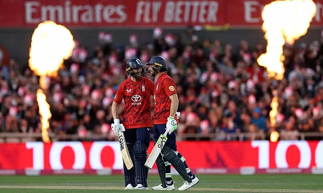 இறுதியில், இங்கிலாந்து அணி 20 ஓவரில் 2 விக்கெட்டுக்கு 304 ரன்கள் குவித்துள்ளது. பிலிப் சால்ட் 60 பந்தில் 8 சிக்சர், 15 பவுண்டரி உள்பட 141 ரன்கள் குவித்தார். ஹாரி புரூக் 41 ரன்கள் எடுத்தார்.