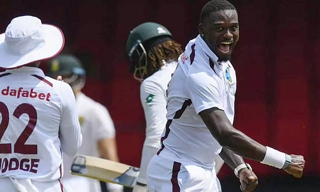 இதையடுத்து தனது முதல் இன்னிங்சை தொடங்கிய வெஸ்ட் இண்டீஸ் அணியும் அடுத்தடுத்து விக்கெட்டுகளை இழந்து தடுமாறியது. 42.4 ஓவர்களில் 144 ரன்களுக்கு ஆல் அவுட் ஆனது. வெஸ்ட் இண்டீஸ் தரப்பில் அதிகபட்சமாக ஜேசன் ஹோல்டர் 54 ரன்கள் எடுத்தார். தென் ஆப்பிரிக்கா தரப்பில் வியான் முல்டர் 4 விக்கெட்டுகள் வீழ்த்தினார்.